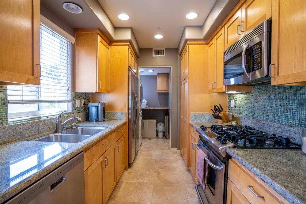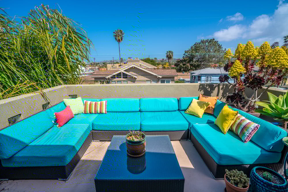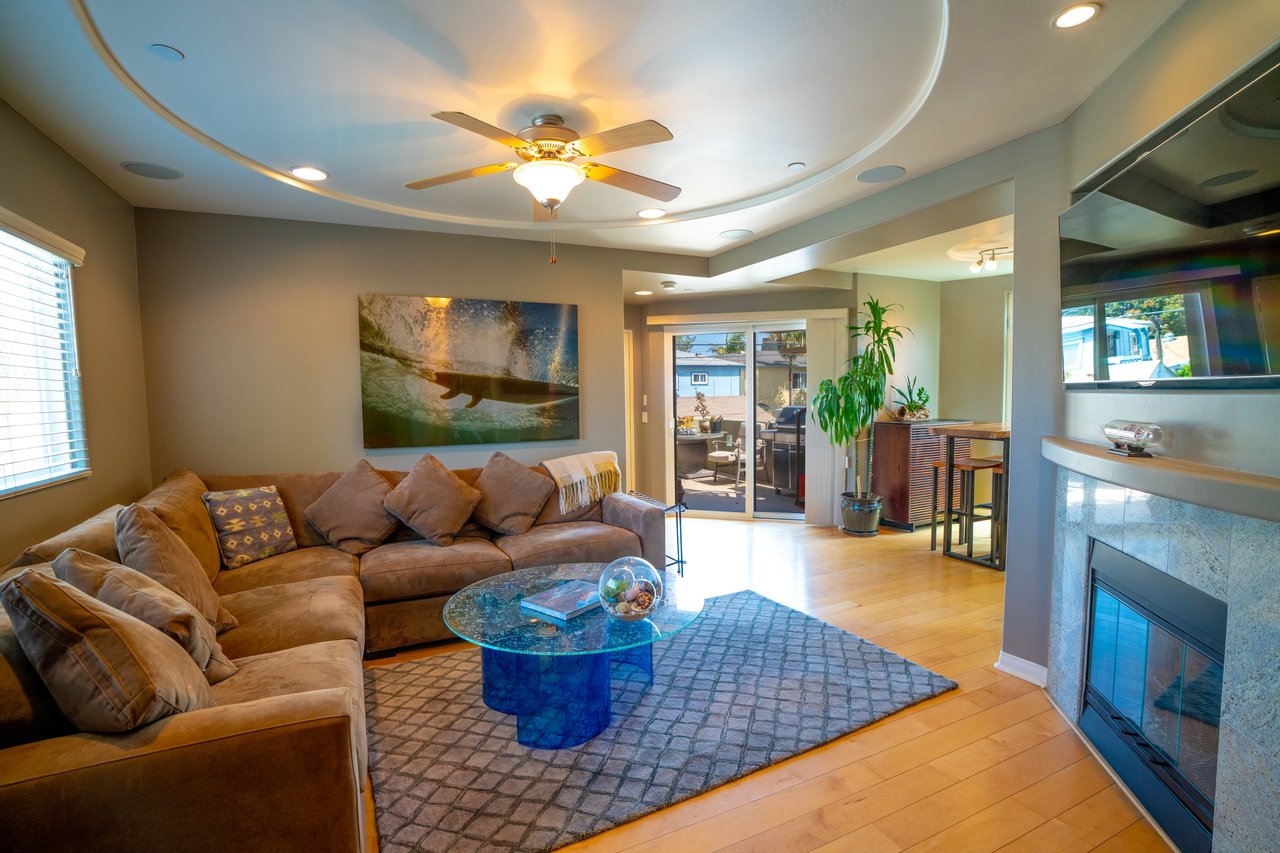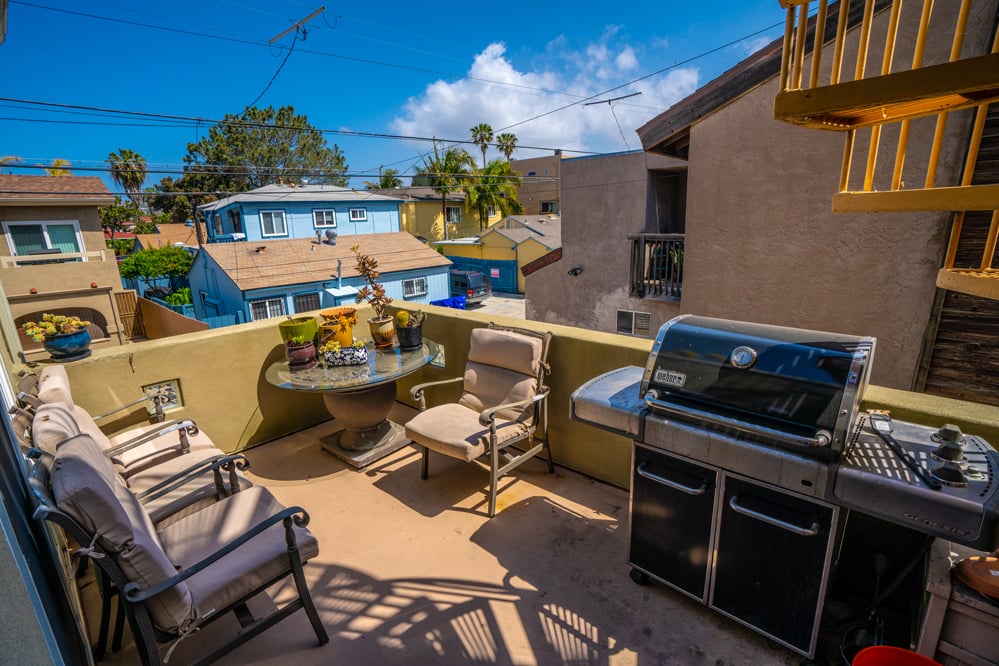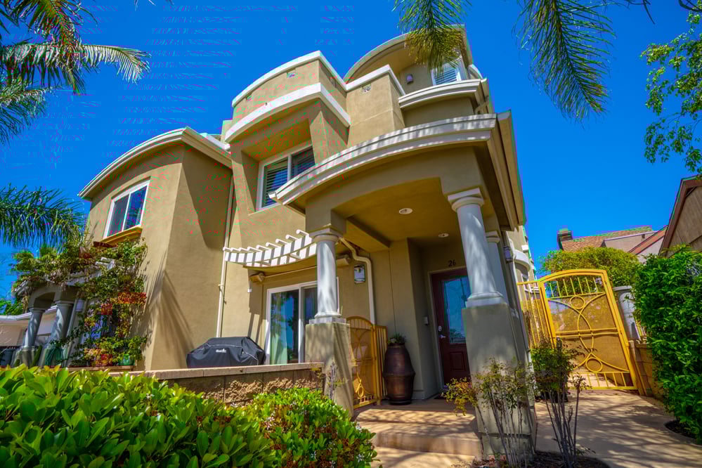 Heavily upgraded 2 bedroom, 2 bath townhome blocks to the beach! This 2008 built property features a highly desired floorplan w/ an attached 1 car garage, top floor master suite w/ walk in closet, bath w/ tub & shower, dual sinks, large/private patio which includes access to the roof top deck showcasing views in all directions. Stainless steel appliances in the kitchen & separate laundry room area. Additional deck space off middle level, central AC, Assigned 2nd parking spot, owned solar & small, 4 unit gated complex.