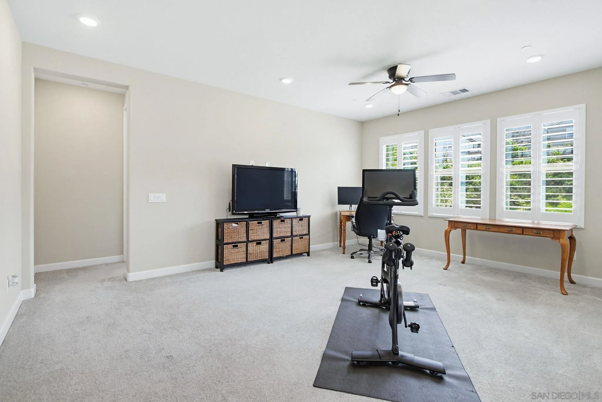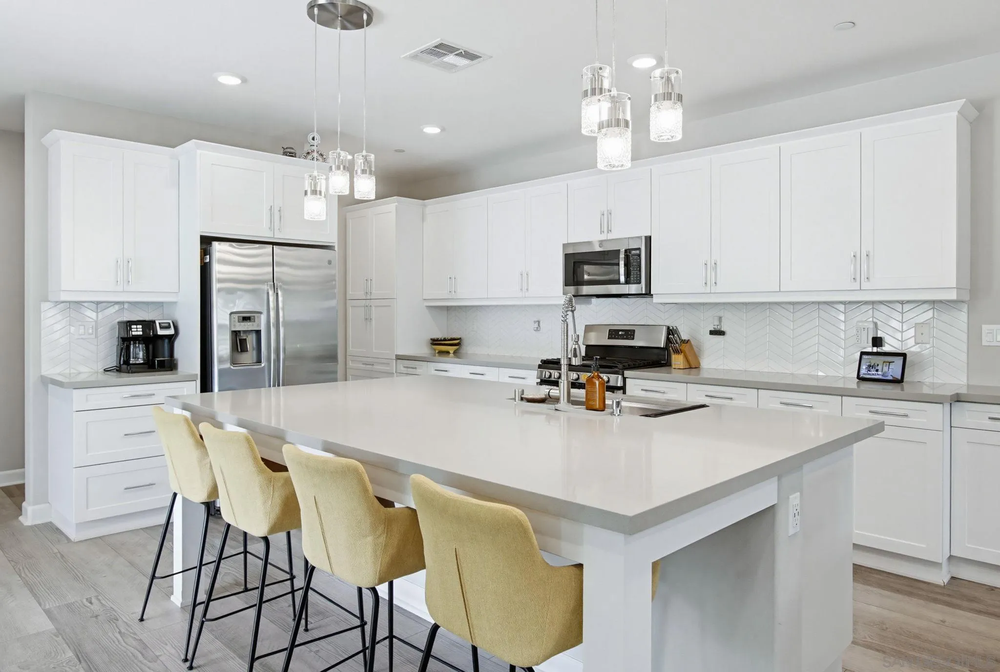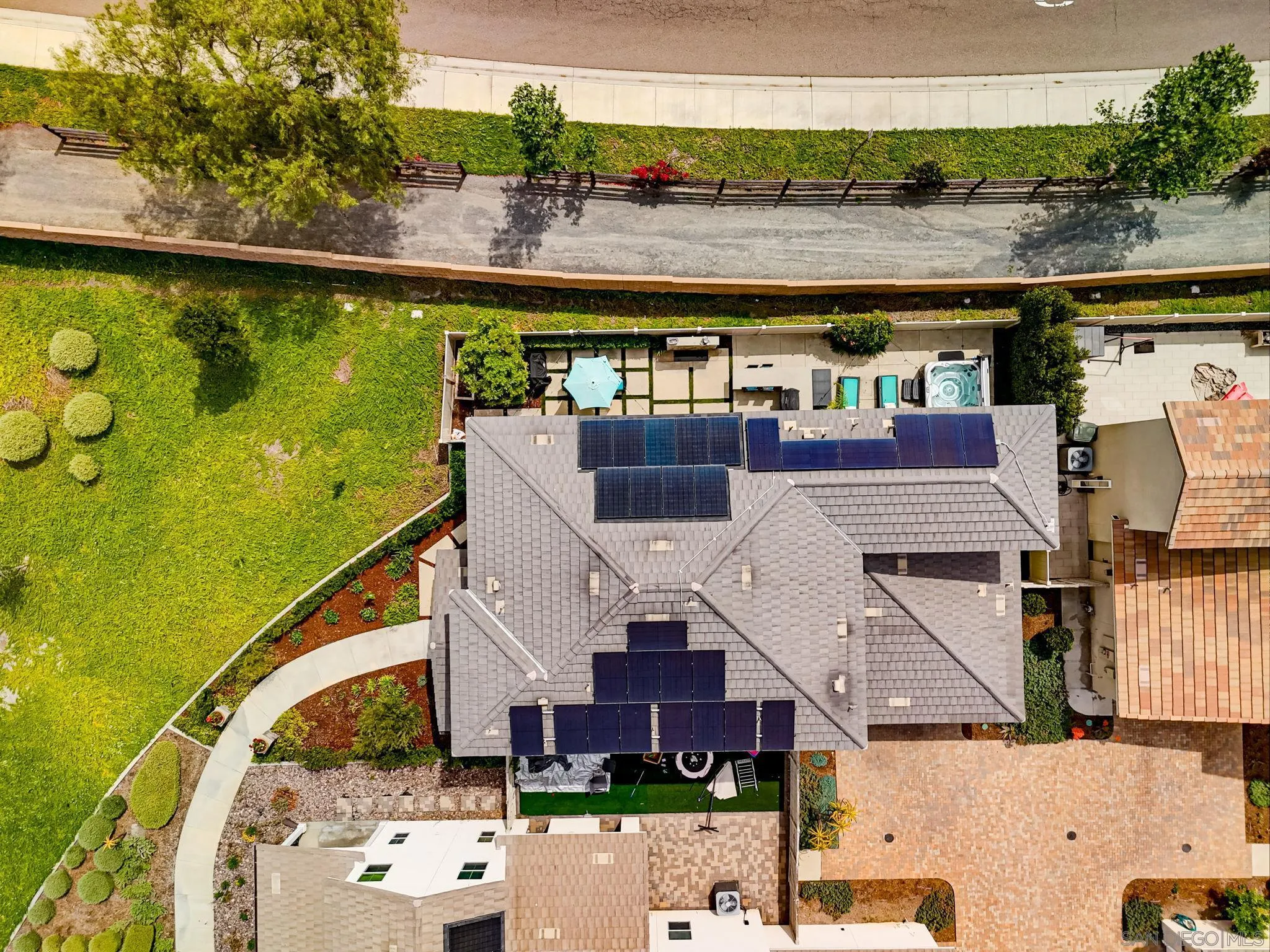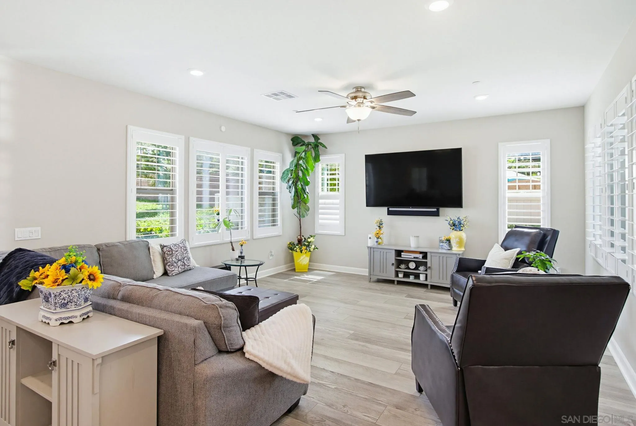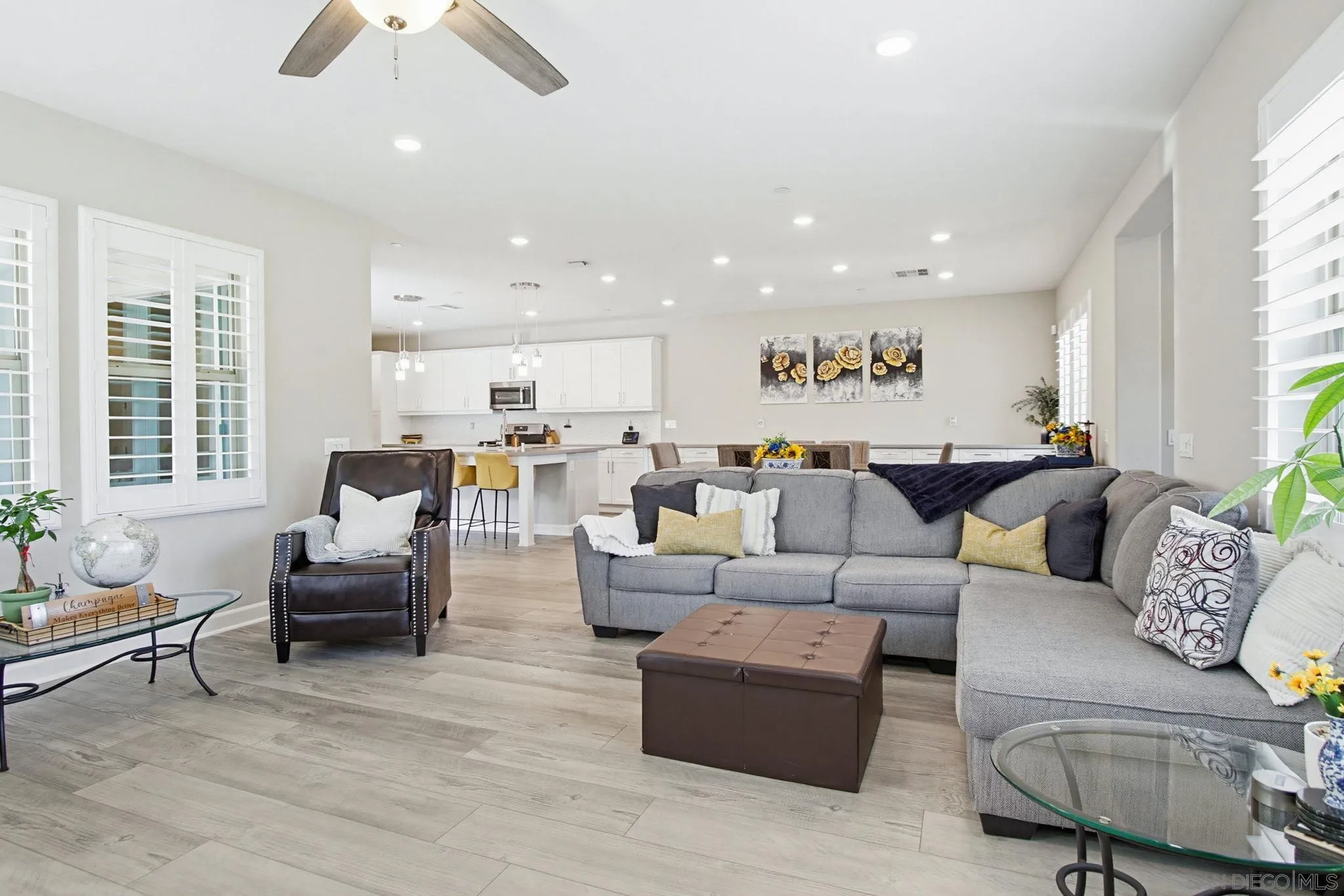 Beautifully maintained 4-bedroom, 3-bath residence tucked away in a private Harmony Grove setting, offering serene open-space & lush greenery views. Over $130,000 in seller upgrades. Thoughtfully landscaped entry & welcoming pathway set the tone for the home's inviting interior. Built in 2019, this highly sought-after open-concept floor plan seamlessly blends comfort & functionality--ideal for both everyday living and effortless entertaining. The expansive kitchen serves as the heart of the home, featuring a large quartz island, stainless steel appliances, a pantry closet, abundant cabinetry, a breakfast bar & a dedicated dining area. The kitchen flows into the spacious living room & extends to a covered California room, creating a true indoor-outdoor living experience. The entertainer's backyard is fully finished w/ a built-in barbecue, water feature, hot tub, & multiple seating areas--all with no neighbors behind, offering exceptional privacy. A downstairs bedroom & full bath provide versatile living options, perfect for guests, a home office, gym, or multi-generational living. The flexible floorplan continues upstairs with an open loft space, 2 additional bedrooms, full hallway bathroom & the primary bedroom & bath. This space showcases a large bedroom filled with light, walk in closet, dual sinks in the bathroom & a separate soaking tub/shower. Additional features include AC, 28 owned solar panels & community pool, parks & walking trails. Turnkey, private, & thoughtfully designed for modern living, this Harmony Grove home truly checks every box.