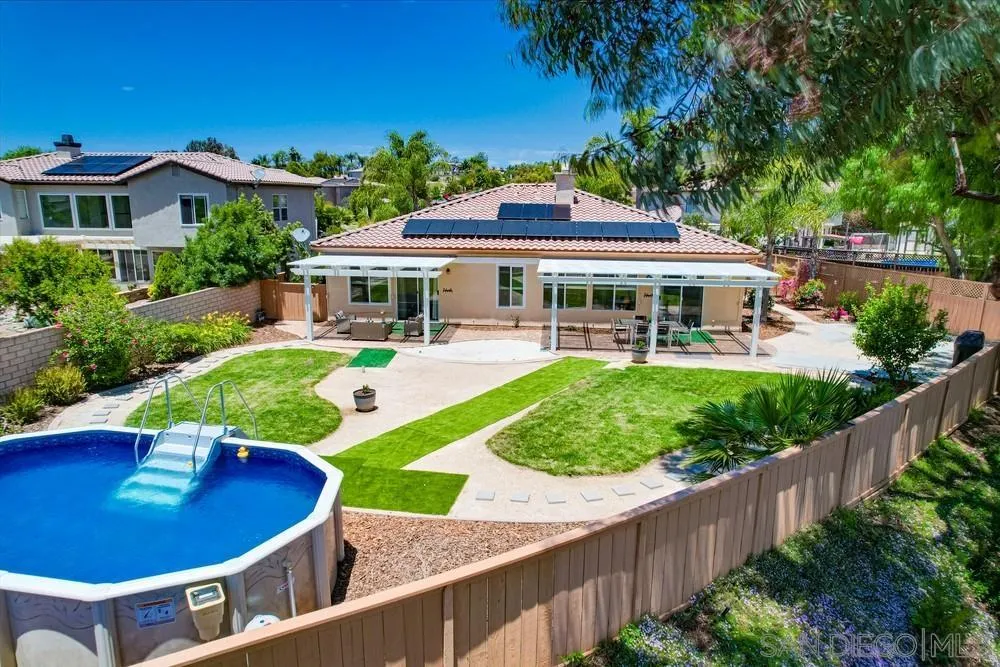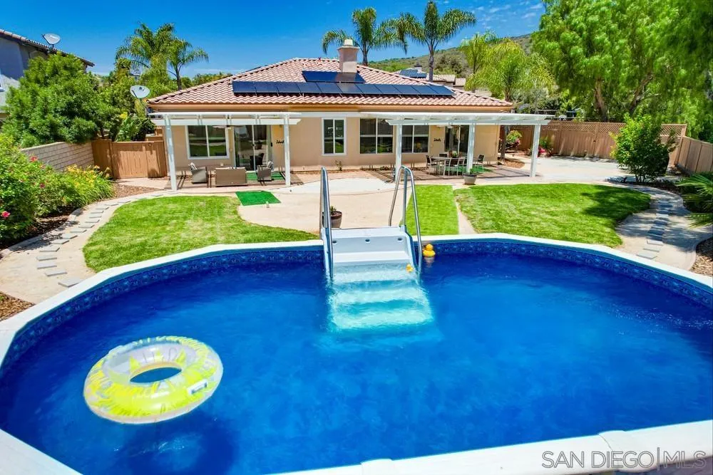 Beautiful single story Ranch style home on a quiet cul-de-sac with almost half acre lot & No HOA dues! Highly desirable community in San Marcos- short walk to newly renovated Richland Elementary School (8/10 rated). 4BR/2BA, 3 car garage home features numerous recent updates in the past 9 months: above ground Doughboy Pool, redone roof, new flooring, 31 solar panels, Tesla Powerwall, freshly painted, LED lighting, landscaping updates & a new concrete patio. Previous updates include AC, tankless water heater & front yard turf. Huge backyard offers plenty of room for privacy, play, entertainment, views/sunsets...the lot even extends past the fence line for potential expansion, RV/boat parking, etc. Convenient location with parks, 72 miles of walking/biking/running paths, CSUSM, shopping & freeways nearby!